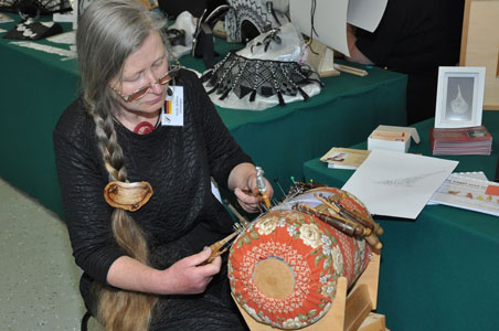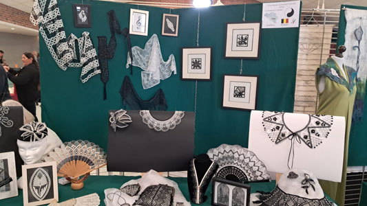 En allemagne, notre fidèle Steffi de Schneeberg et son amie avec des fuseaux bien particuliers. Elles proposaient sur leur stand des vêtements et des tableaux.