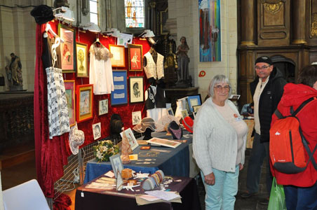 Nous quittons la salle la Grange pour arriver à l'église St Martin. A l'accueil, nous retrouvons Marie-Luce et Daniel de permanence à l'heure du déjeuner. A côté, Danièle et Evelyne, imbattables au poste tombola. Leur objectif : "tout doit disparaitre". Objectif réalisé dès le samedi !