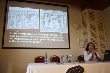 Neus Riba présentait son musée d'Arenys de Mar qui propose avant tout de la dentelle aux fuseaux appelée Retfi catalan mais comme elle était venue pour parler de la dentelle à l'aiguille, elle nous a expliqué que le musée serait prochainement aménagé pour consacrer un espace dédié à la dentelle à l'aiguille :punto de catalogne, de Ténérife, de Villadoïd, de Venise, ...