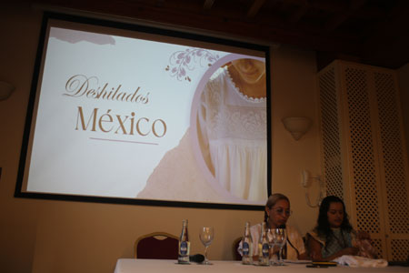 La conférence du Mexique était présentée par la mère et la fille. Cet art remonte à l'époque espagnole. Grâce aux réseaux férroviaires les dentelles sont devenues célébres et se sont vendues en dehors de Mexico. Un collectif a été créé en 1952 pour préserver cette tradition et faire connaître le vêtement traditionnel. Il faut 6 mois pour faire une robe.