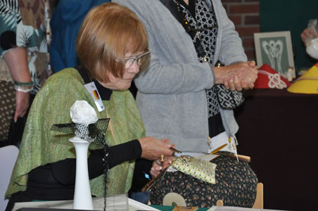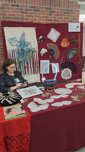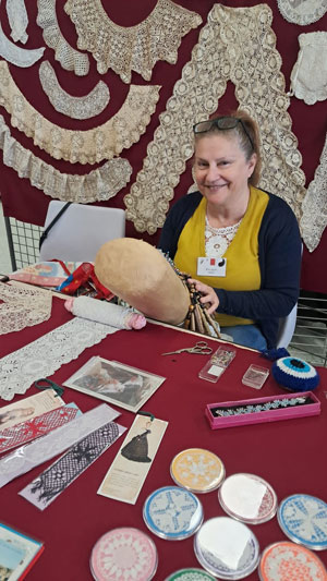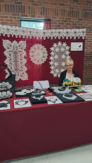En allemagne, notre fidèle Steffi de Schneeberg et son amie avec des fuseaux bien particuliers. Elles proposaient sur leur stand des vêtements et des tableaux.