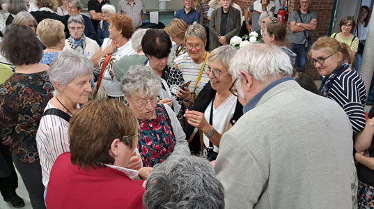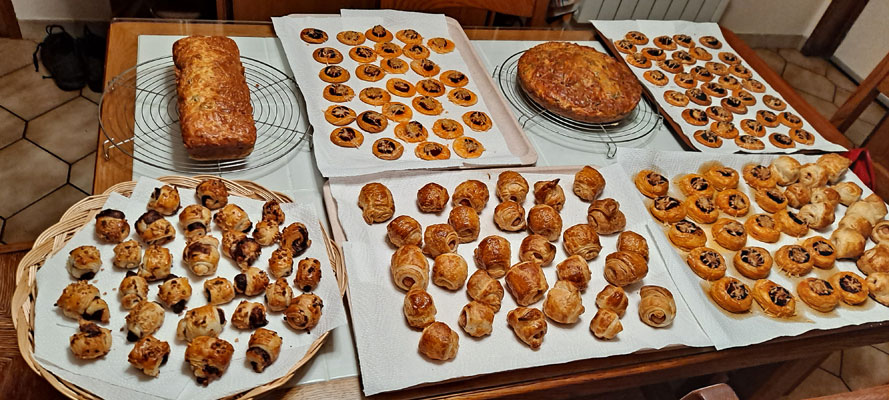 Toute la journée du vendredi nos dentellières avaient préparé le buffet de l'inauguration qui se déroulait le vendredi en fin d'après-midi. Pour plus de facilités, les préparations et cuissons étaient faites aux domiciles des dentellières car tout était fait maison.
