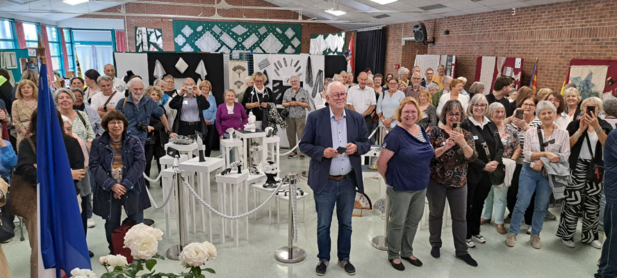 Notre conseillère départementale, Béatrice Descamps, était accompagnée de notre maire, Bruno Cellier, pour l'ouverture officielle de la Biennale avec la cérémonie du ruban bleu, blanc rouge réalisé en dentelle par Danièle et Evelyne.