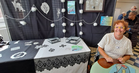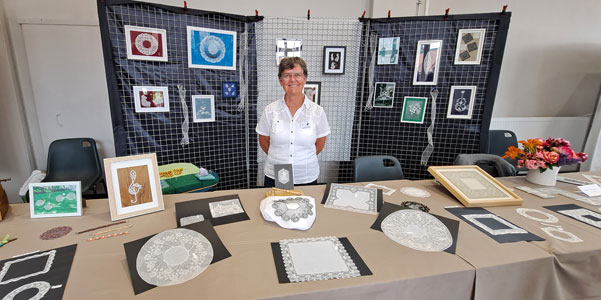 Un thème très bien respecté au stand des Fuseaux en Seine : il n'y avait pratiquement que du noir et blanc. Merci à ces dentellières qui, sans obligation aucune, ont fait honneur à notre thème. C'était très joli à voir et très agréable de découvrir l'imagination des dentellières.