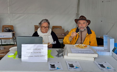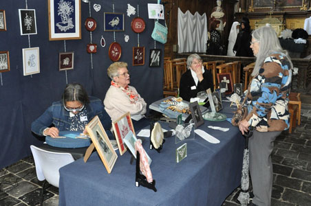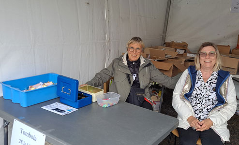 Nous quittons la salle la Grange pour arriver à l'église St Martin. A l'accueil, nous retrouvons Marie-Luce et Daniel de permanence à l'heure du déjeuner. A côté, Danièle et Evelyne, imbattables au poste tombola. Leur objectif : "tout doit disparaitre". Objectif réalisé dès le samedi !
