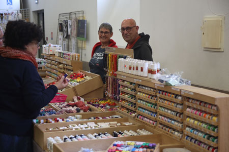 Les fidèles commerçants étaient également présents à Héricourt. Ici Rosa san Nicolas de Barcelone et Valérie et Philippe de la SARL Midon dentelle qui avait plein de nouveaux kits..